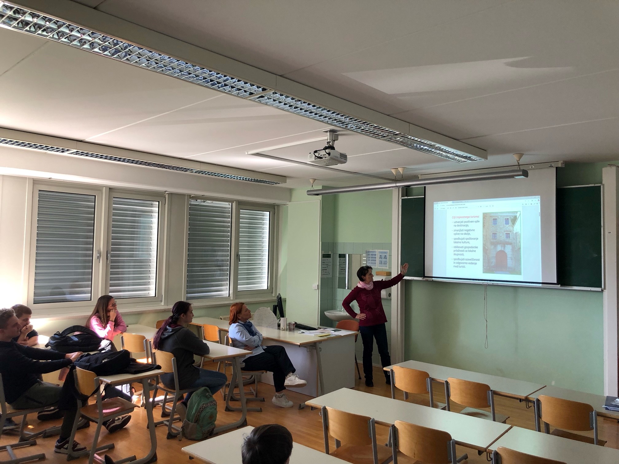 O trajnostnem turizmu pa nam je predavala tudi prof. Greta Černilogar 👩🏫, ki nam je nekaj tednov nazaj pripravila delavnico o trajnostnem turizmu, kar nam je razširilo obzorja 🌱 ter nas tako tudi pripravilo za prej omenjeni obisk.